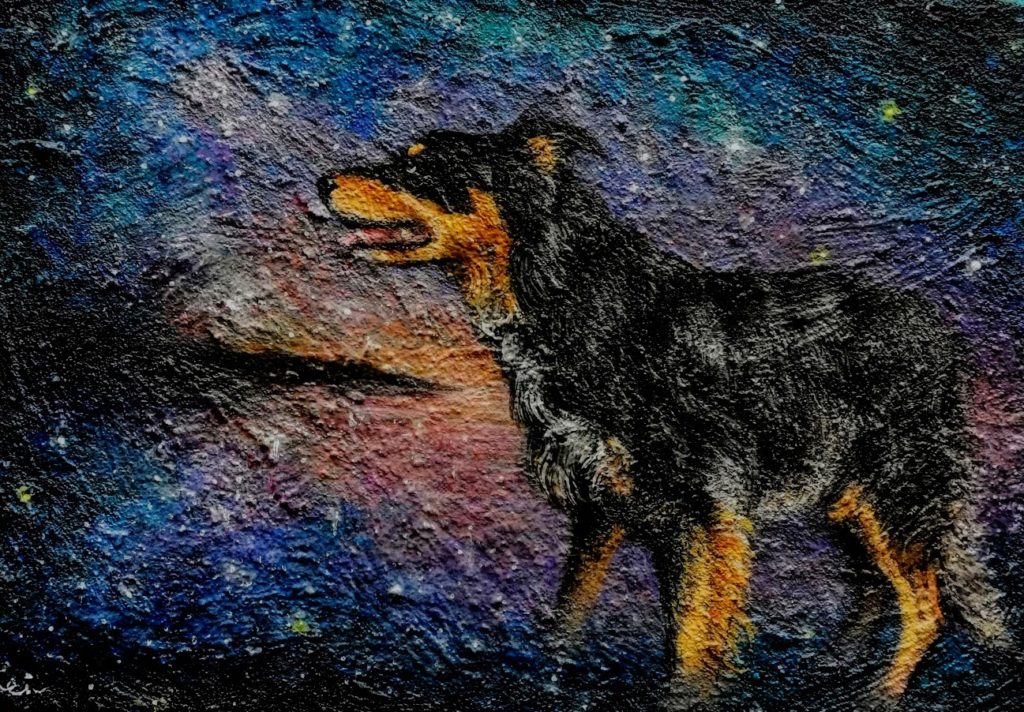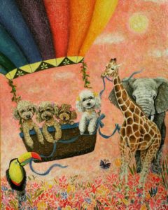 ケイさんの絵は、ただの愛犬の模写ではなく、ファンタジーな世界にそれぞれの個性や性格が浮き出すように表現されました。